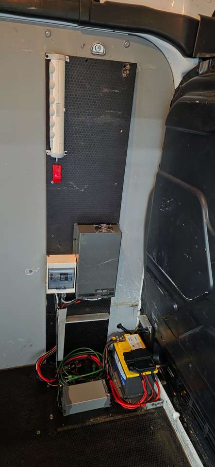 – Installation 220V déjà présente avec : Onduleurs, multi-prises Legrand (6), Batterie AGM, Chargeur de batterie, boite disjoncteurs, fusibles, relais, connectiques. Prise extérieur pour chargement à une prise domestique (cable de recharge fourni). Valeur totale = +/- 3.500 euros