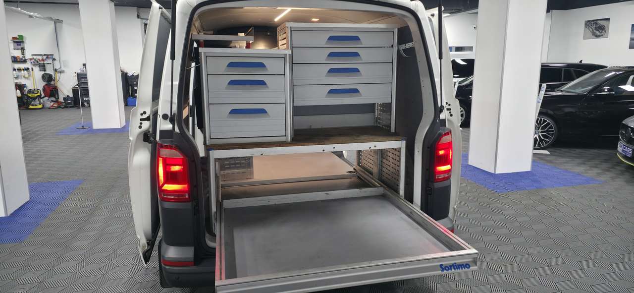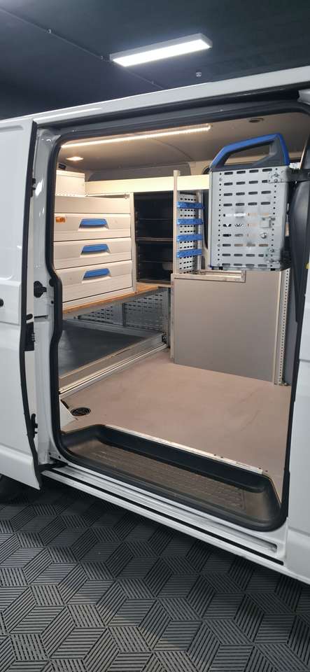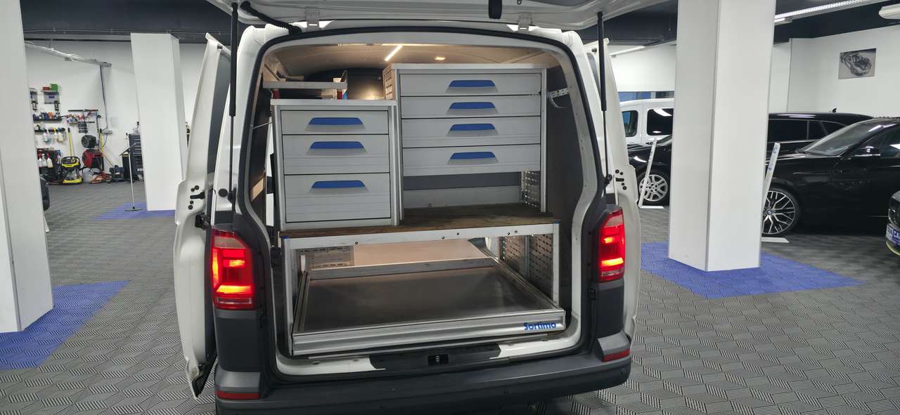 ➡️ VOLKSWAGEN Transporter * Double portes LATERALES * Utilitaire 3 PLACES * 2.0 DIESEL * BIEN EQUIPE : ETAGERES SORTIMO + Android Auto/CarPlay + Cuir 3 PLACES + CLIM * 1er propriétaire + carnet d'entretien Complet *