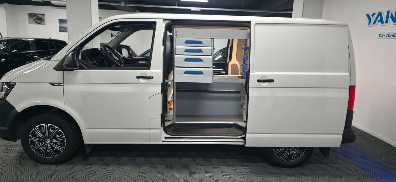 ➡️ VOLKSWAGEN Transporter * Double portes LATERALES * Utilitaire 3 PLACES * 2.0 DIESEL * BIEN EQUIPE : ETAGERES SORTIMO + Android Auto/CarPlay + Cuir 3 PLACES + CLIM * 1er propriétaire + carnet d'entretien Complet *